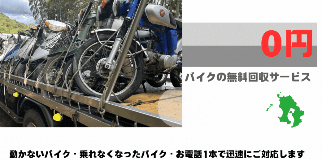 なぜ無料?→ 回収したバイクを適正にリサイクル・リユースし、部品販売や海外輸出で収益を確保。環境保護と事業の両立を実現した持続可能なビジネスモデルです。